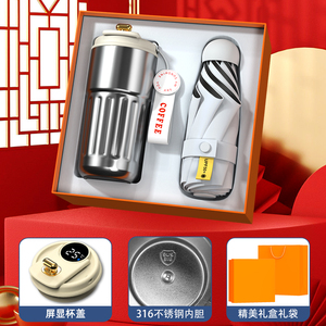 スマートコーヒーカップ温湿布頚椎器具磁気吸引ワイヤレスパワーバンクポータブル傘ブラック4点セットギフトボックス付き