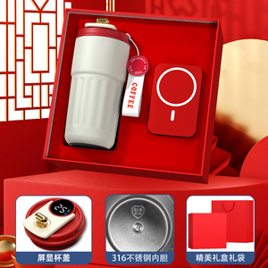 316 デジタル ディスプレイ コーヒー カップ F6 充電磁気パワーバンク 3 点セット レッド 2D レッド ボックス付き