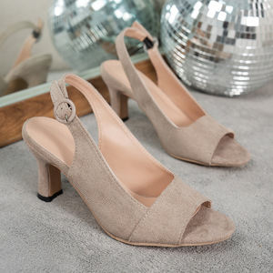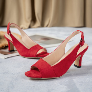 2025 夏の新大きいサイズスエードヨーロッパとアメリカのワンストラップサンダルクロスボーダーチャンキーヒールオープントゥハイヒールウィッシュ 43 サイズ