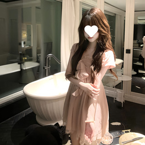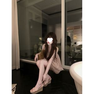 蔷薇来信 古着感烟粉色古早千金风吊带连衣裙夏季新款优雅短裙子