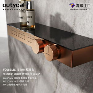 拉丝玫瑰金-明转暗装铜体置物恒温淋浴花洒全套一整套