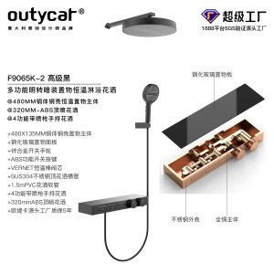 广东欧缇卡厨卫科技有限公司 质保5年 全铜主体水路 不锈钢置物外壳 不锈钢扁方淋浴管