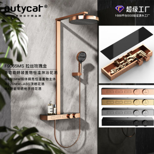 拉丝玫瑰金-扁方管铜体置物恒温淋浴花洒全套一整套