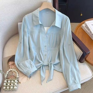 设计感假两件系带衬衫女年春季新款韩版宽松长袖显瘦上衣