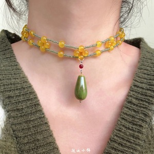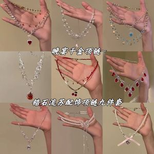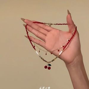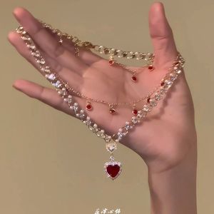 「闪耀之心」红色爱心珍珠双层叠戴项链公主轻奢高级感新年锁骨链