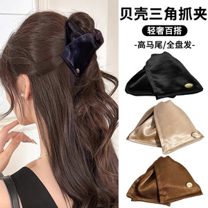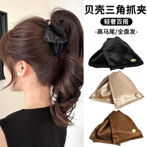 法式缎面布艺三角抓夹女2025头饰高级感后脑勺发夹气质鲨鱼夹发饰