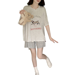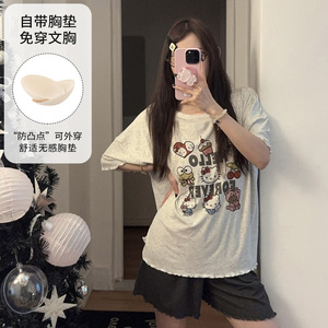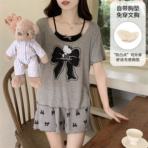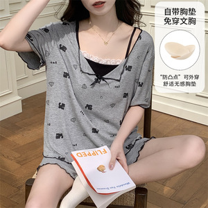 夏季新款带胸垫睡衣女短袖短裤莫代尔凉感卡通可爱家居服套装可爱