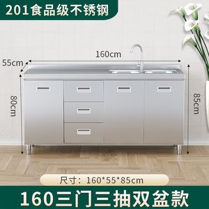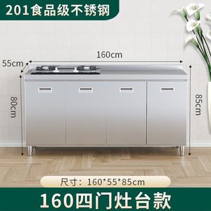 304 総合ステンレス鋼キッチンキャビネット極厚シンプル食器棚ストーブ一体型農村収納家庭用小型アパート