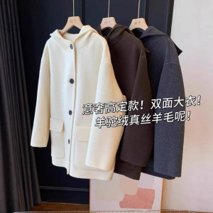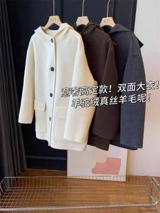重磅实穿!高端轻奢女装羊驼绒真丝羊毛连帽毛呢外套短款呢子大衣