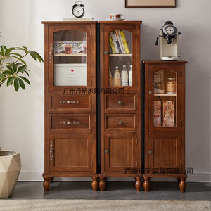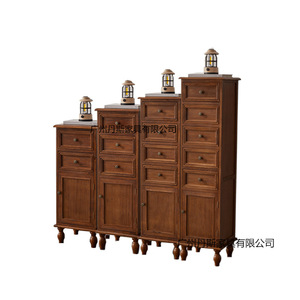 新しいアメリカンスタイルのダンプキャビネットレトロ収納キャビネット引き出しタイプドア付き無垢材収納狭いキャビネットスリット収納キャビネット寝室
