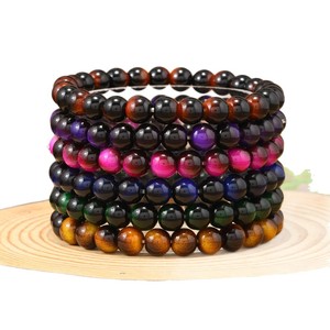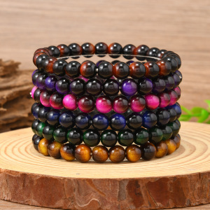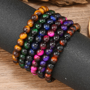 厂家直发跨境新品复古风格天然彩色珠虎眼石手工串珠时尚男女手串