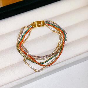 合金ブレスレット、ヨーロッパとアメリカのフルダイヤモンド多層ブレスレット、軽い高級感、シンプルなニッチな気質、多用途なハンドアクセサリー