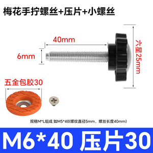 六角梅花手拧螺丝带压片六星胶头螺丝栓M5M6M8M10家具用手拧螺钉