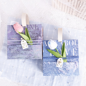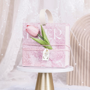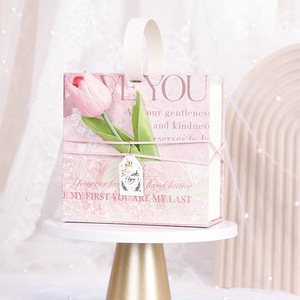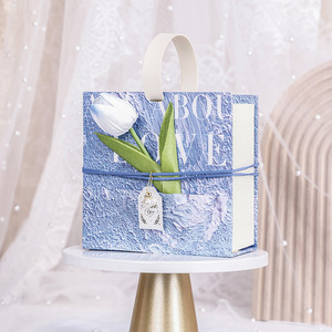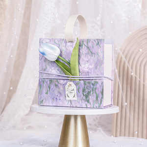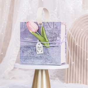 新款小清新伴手礼盒油画风郁金香手提礼物盒情人节生日礼物盒空盒
