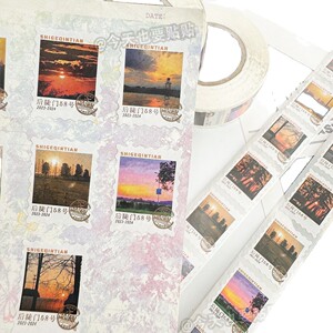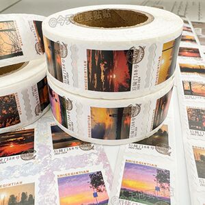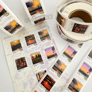 1500贴十个勤天邮票卷卷贴后陡门58号高颜值后陡门夕阳ins封口贴