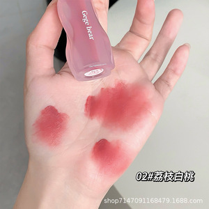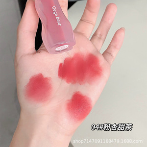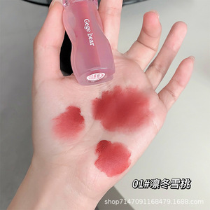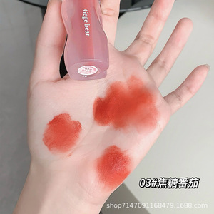 跨境戈戈小熊口红唇釉镜面水光玻璃唇彩细腻绵柔口红学生显白唇釉