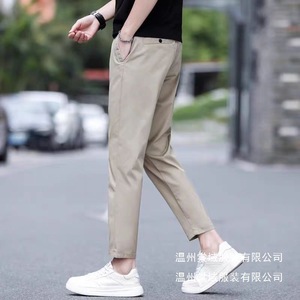 2025 新しい夏の 9 点パンツメンズスリムアイスシルクストレート薄いパンツ男の子のための緩い多用途休暇卸売