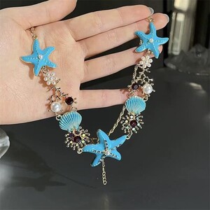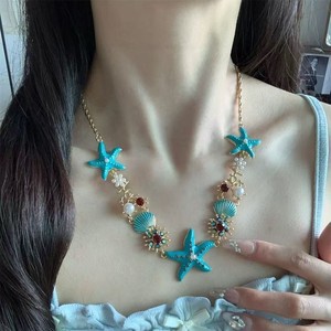 海边度假风蓝色海星贝壳项链女甜酷小众设计感锁骨链旅行拍照配饰