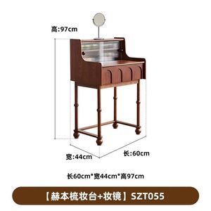 法式中古风白蜡木实木梳妆台小户型卧室迷你小型化妆台一体化妆桌