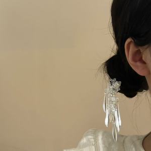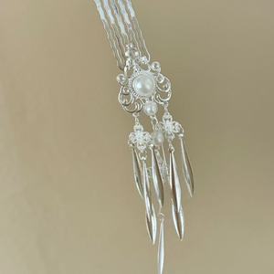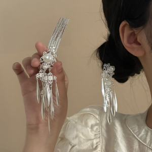古代スタイルの漢服の頭飾り、銀のタッセルヘアコーム、妖精のステップヘアピン、古代衣装の戦国ローブアクセサリー、ヘアピンヘッドアクセサリー
