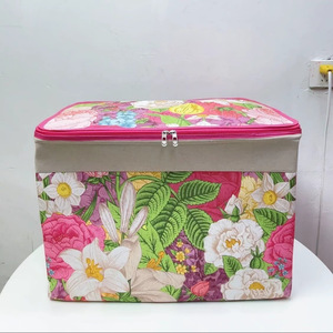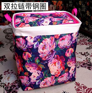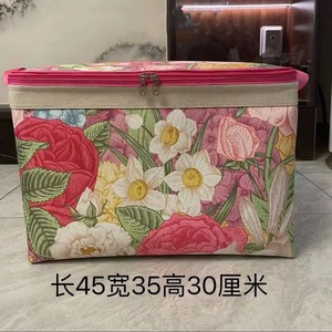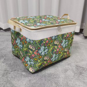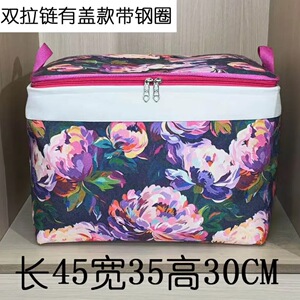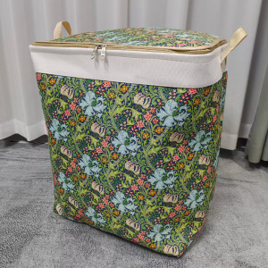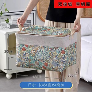 ダブルジッパー、スチールリム付き、3層の厚みのあるキャンバス収納バッグ、蓋付き、衣類やキルト用の折りたたみ式収納ボックス