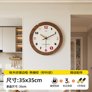 ●桃木纹理边框●焦糖棕秒针款:35X35CM