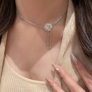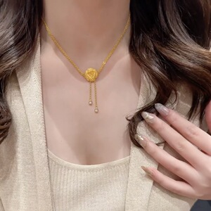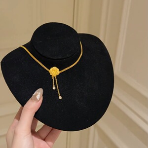 绸缎拉丝金色蕾丝花边玫瑰花流苏项链高级感米兰尼斯锁骨链气质颈