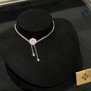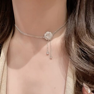 XL105拉丝玫瑰花项链39CM【白金色】】