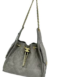 小香新款25k麂皮菱格女士流浪包抽绳链条水桶包轻便休闲 腋下手袋