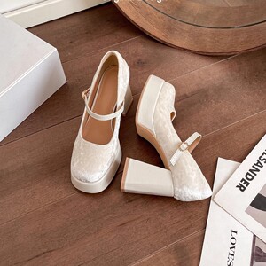 毎日履けるメリージェーン厚底ウェディングシューズ、新しい中国風メリージェーンハイヒール、女性用2025シングルシューズ、ワンラインバックル