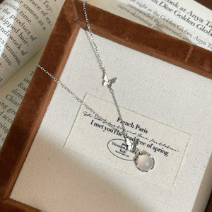 Diqi スターリングシルバー 999 ライト高級ニッチ バタフライ ホワイト カルセドニー ネックレス レディース フォレスト スタイル ハイエンド スターリング シルバー 鎖骨チェーン 多用途
