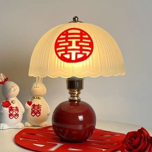 ウェディングロングランプウェディングクリームベッドルームテーブルランプベッドサイドランプハイエンド雰囲気ブライダルナイトライト