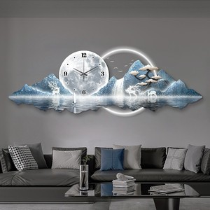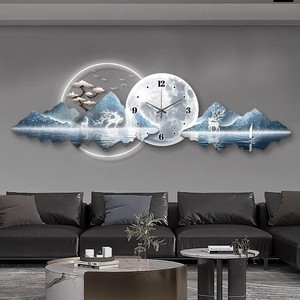 2025 新しいスタイルの壁掛け時計付きリビングルーム装飾絵画ハイエンドソファ背景壁掛け絵画日照金山壁ランプ