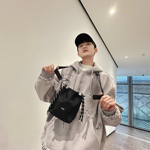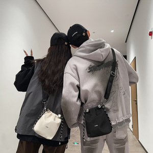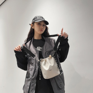 夏季印花字母水桶包包2025新款设计感大容量尼龙复合布单肩斜挎包