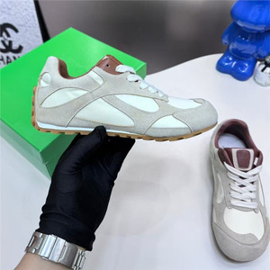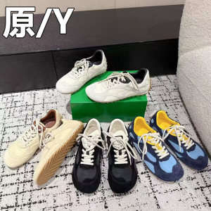 高版本刘雯同款BV阿甘鞋复古系带拼色德训鞋女真皮平底运动休闲鞋