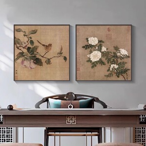 新しい中国風の茶室絵画、レトロな装飾絵画、花と鳥、オフィス書斎の壁画、中世スタイルのリビングルームの背景壁掛け絵画