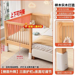 全榉木拼接床实木儿童婴儿床可升降加宽拼接大床小孩床边床拼接床