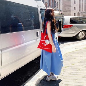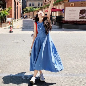 蓝色无袖背心连衣裙子女夏季2025新款海边度假法式气质超好看长裙