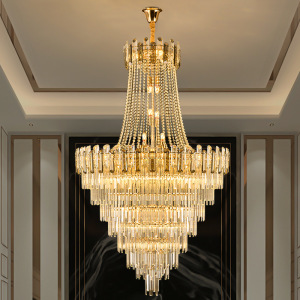 挑空复式楼大吊灯挑高中空跃层大厅灯具现代轻奢别墅客厅水晶灯具
