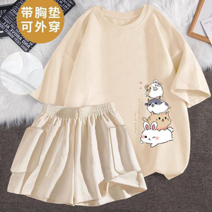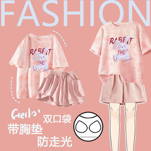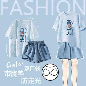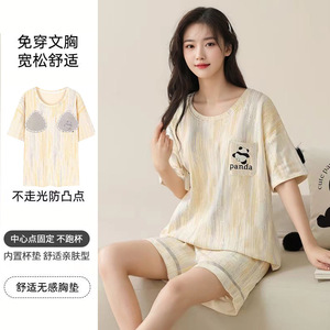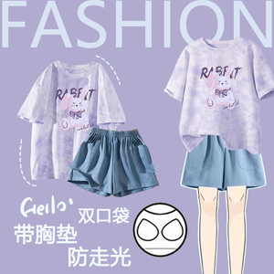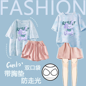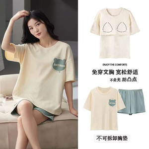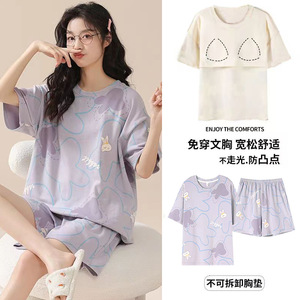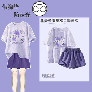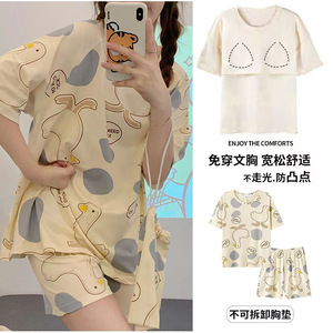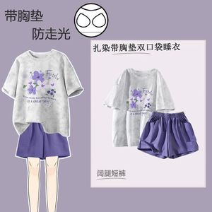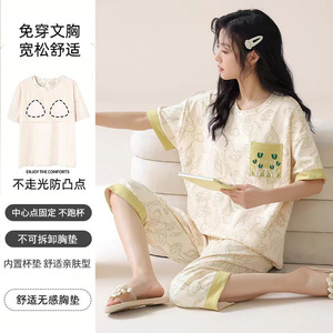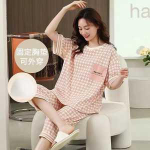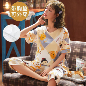 睡衣女夏纯棉夏季新款短袖七分裤韩版休闲可爱外穿家居服套装女士