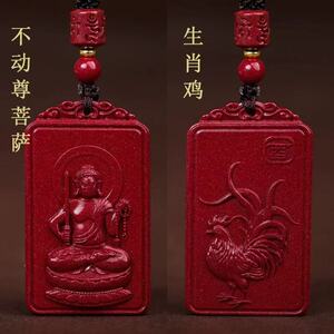 火災検知機能付き高純度辰砂高含有紫金砂十二支方牌八守護神ペンダント