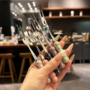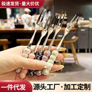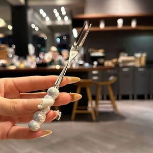 不锈钢水果叉高颜值轻奢可爱珍珠小叉子套装儿童甜品蛋糕叉水果签