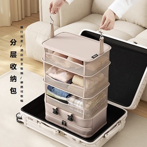 吊り下げ式層状収納バッグ、出張用折りたたみ式衣類収納バッグ、旅行用ホテルワードローブ収納下着吊り下げバッグ