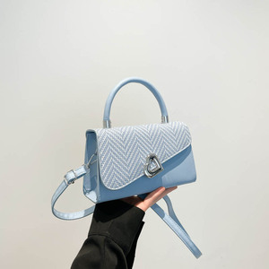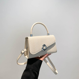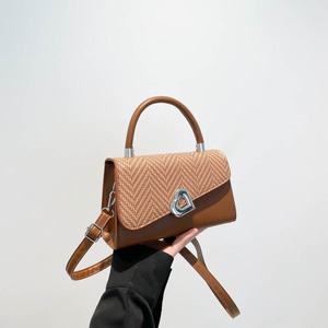 洋气时尚纯色拼接2025新款简约休闲大容量单肩斜挎通勤手提小方包