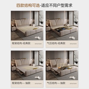 带灯皮床意式主卧床储物网红大床高端软包床轻奢豪华时尚结婚床