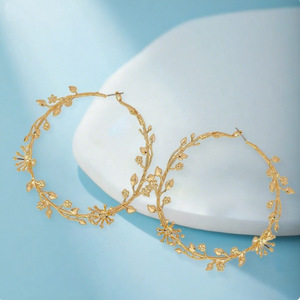 クロスボーダーの新しいスタイルの棘籐バラの花のイヤリング、甘いスタイルのハイエンドメタル中空金メッキイヤリング