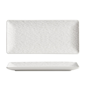 マットホワイト-12inch石模様長方形浅皿