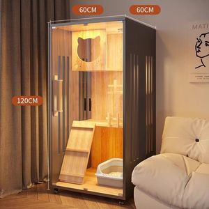無垢材大スペース猫ヴィラパノラマケージ猫キャビネット家庭用防水高級猫ケージ猫ハウス屋内猫の巣送料無料