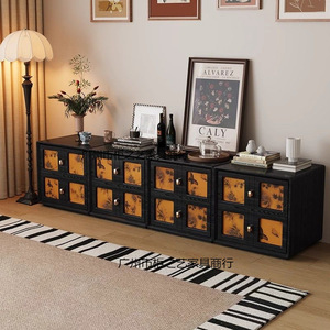 【アッシュウッド-レトロブラック】祥雲ガーゼカーマンキャビネット_4(テレビキャビネット)
