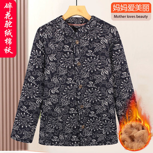 中高年向けのママの綿コート、冬の花柄綿コート、中国風のラクダの毛皮のコート、ベルベットの厚みのある暖かい綿のコート、ゆったりとした